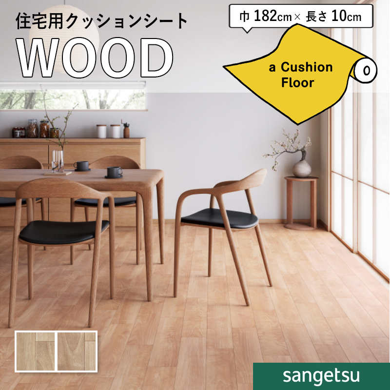 クッションフロアシート 抗菌 木目 クッションフロア サンゲツ 1.8mm厚 182cm巾 キリュウザクラ 板巾 約13cm