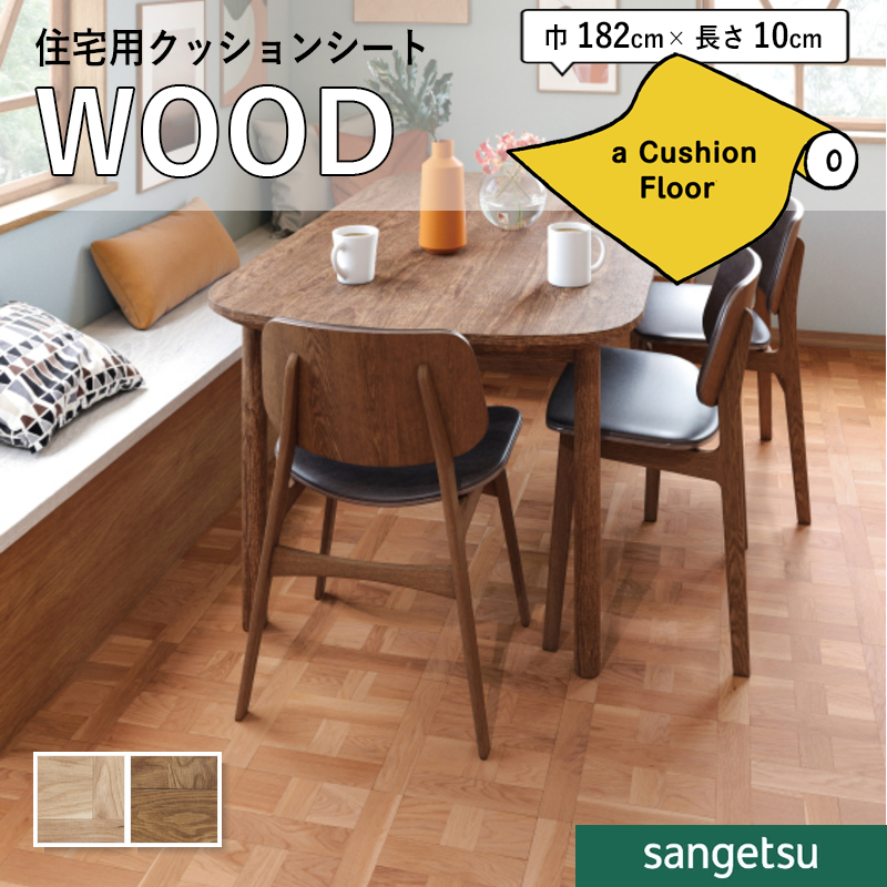 クッションフロアシート 抗菌 木目 クッションフロア サンゲツ 1.8mm厚 182cm巾 パーケット格子 約30.3cm角
