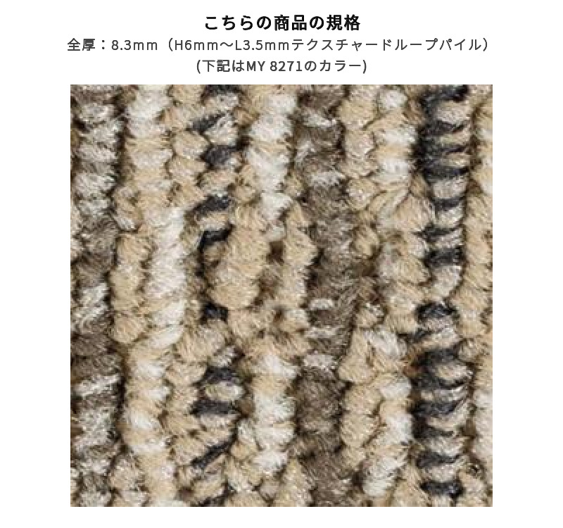 全厚:8.3mm(H6mm〜L3.5mmテクスチャードループパイル)