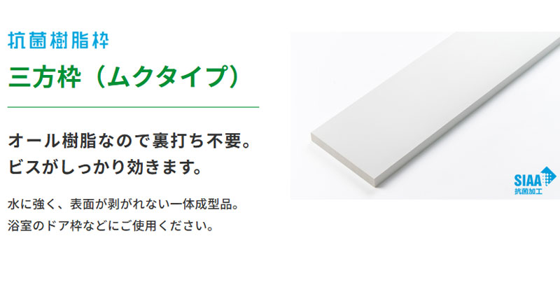 樹脂枠 三方枠 ムクタイプ (W126/T24) 浴室のドア枠 城東テクノ JOTO SP-N7003M24 縦枠:126、上枠:126 (間口)800 (高さ)2,200 mm