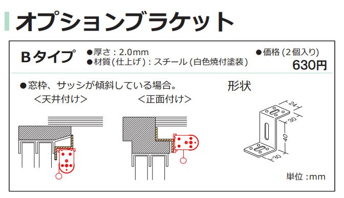 立川機工ロールスクリーン専用 オプションブラケット Bタイプ 2個入り