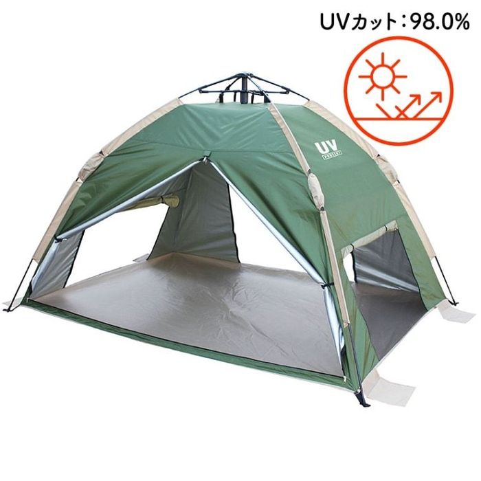 ●UV98%カットプロテクト仕様。風通りがよく、ワンタッチで組み立て&持ち運びラクラク。