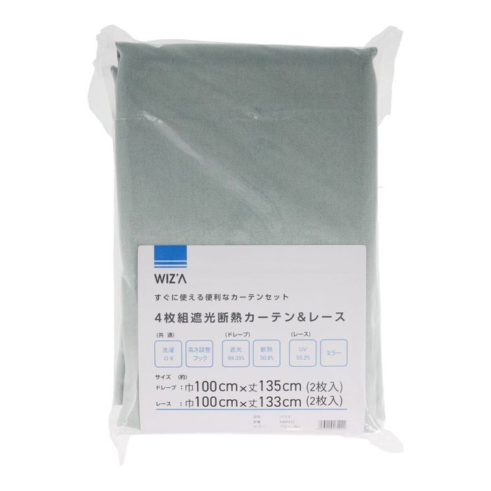 100×135cm:サイズドレープ:巾100cm×丈135cm(2枚入り) レース:巾100cm×丈135cm(2枚入り)、組成ドレープ 縦:ポリエステル100% 横 ポリエステル100%、レース ポリエステル100%