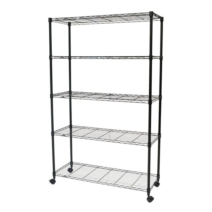 付属品: ワイヤーシェルフ×5、ポール×4、スリーブ×22組(予備1組)、キャスター(ストッパー付き、ストッパー無し)各×2、●アジャスター×4、スパナ×1
