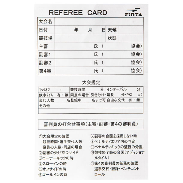 フィンタ FINTA レフリー記録用紙(10枚入リ) サッカー フットサル レフリー 審判用品 18FW(FT5166)