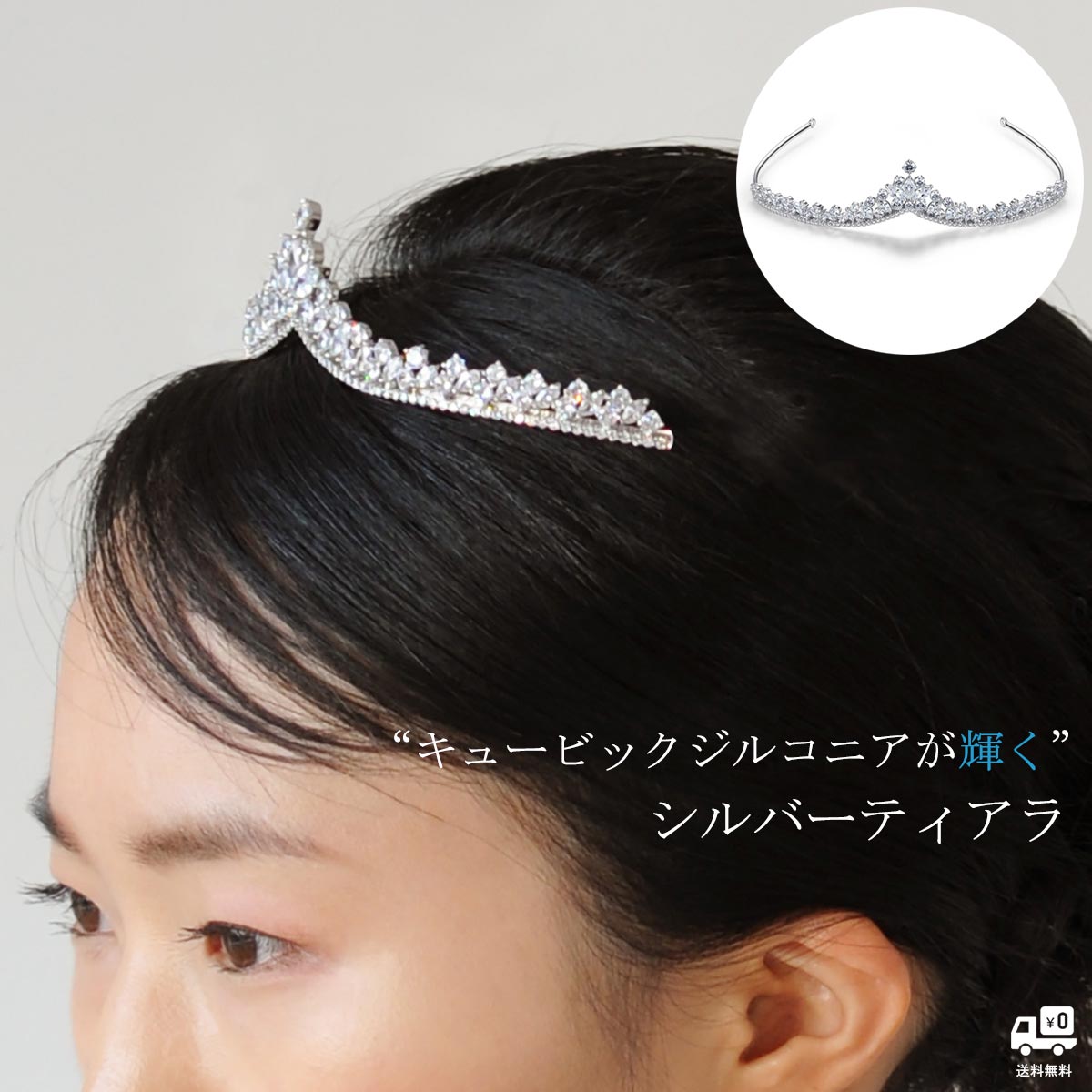細身ながらキュービックジルコニアがキラキラと輝き、存在感があるティアラです。