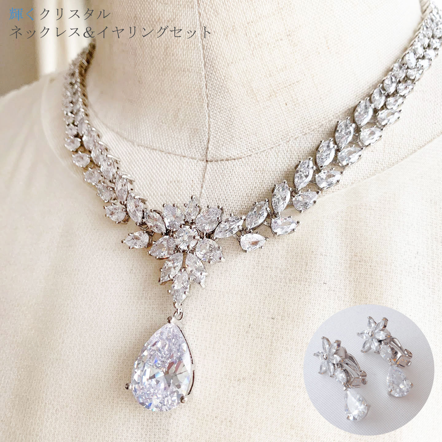 ネックレス イヤリングセット ウエディング ネックレスセット クリスタル ブライダル アクセサリー ウエディング 花嫁アクセ 人気 B189