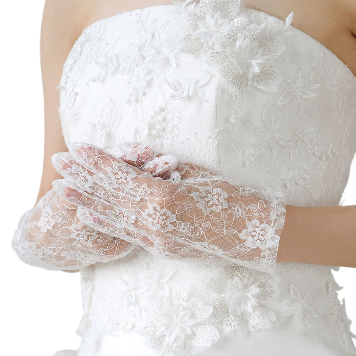 かわいらしさの中にエレガントさがある花柄のレースのショートグローブです!】