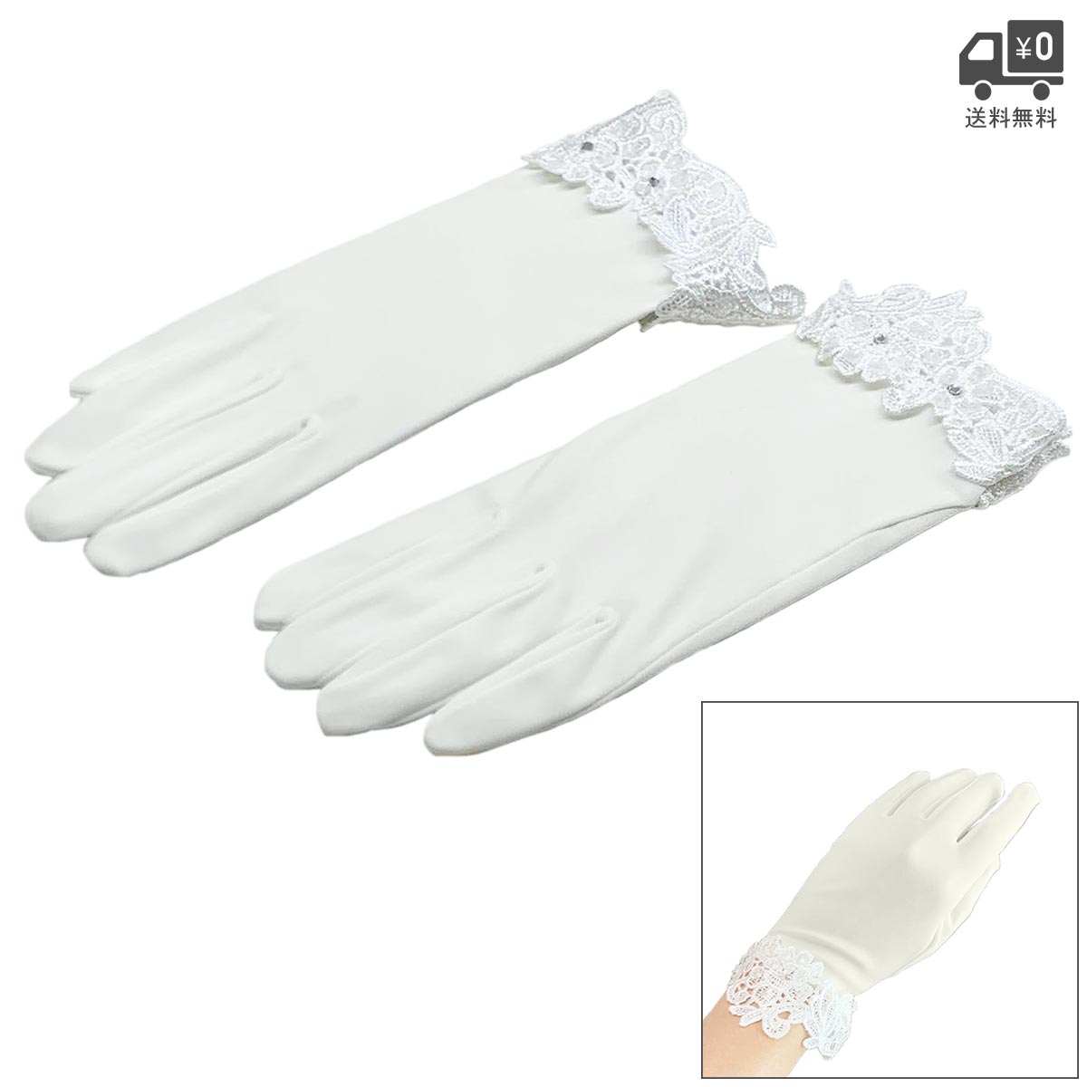 ウエディング グローブ ショート レース ブライダル オフホワイト クリスタル サテン ウエディンググローブ ショートグローブ パーティー結婚式 手袋