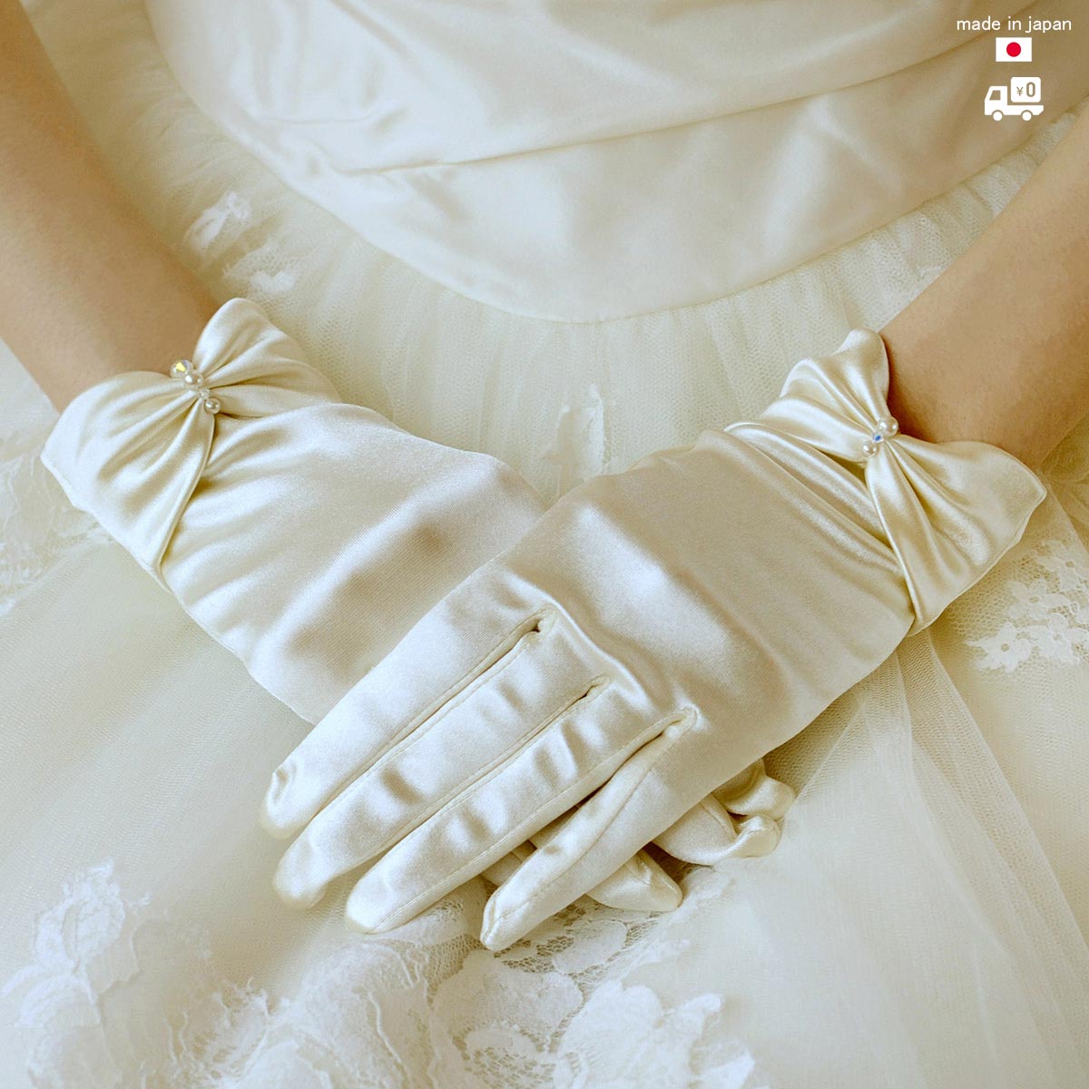 落ち着いたテイストでかつエレガントな雰囲気を演出してくれるサテンタイプのショートグローブです。