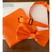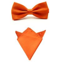 蝶ネクタイ チーフセット オレンジ 無地 ボウタイ ポケットチーフ サテン 結婚式 新郎 フォーマル ブライダル ウエディング タキシード用 蝶タイ
