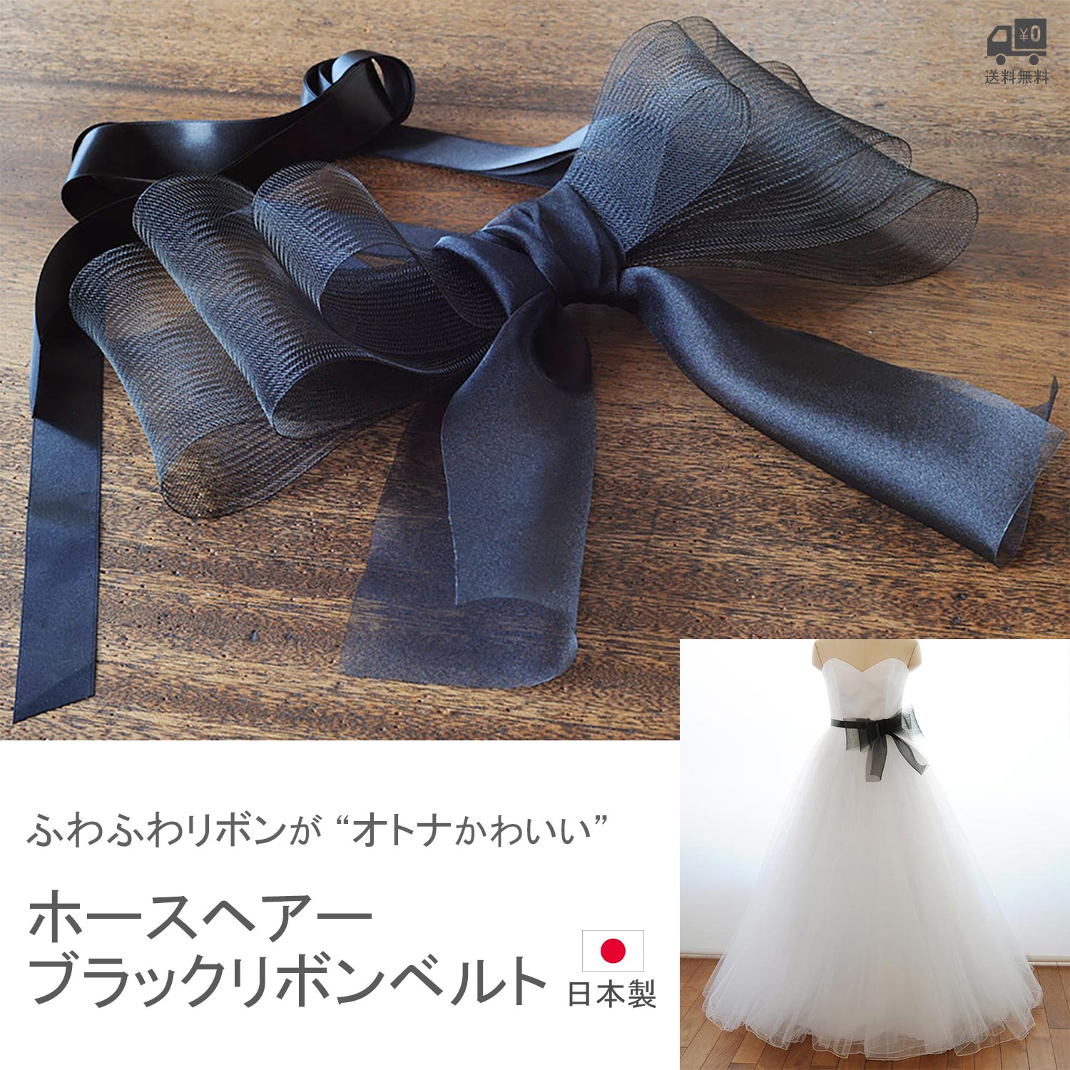 リボンベルト サッシュベルト リボン ホースヘア 黒リボン ウエディング ウエディングドレス ブライダル 二次会 ウエディングドレス小物 花嫁