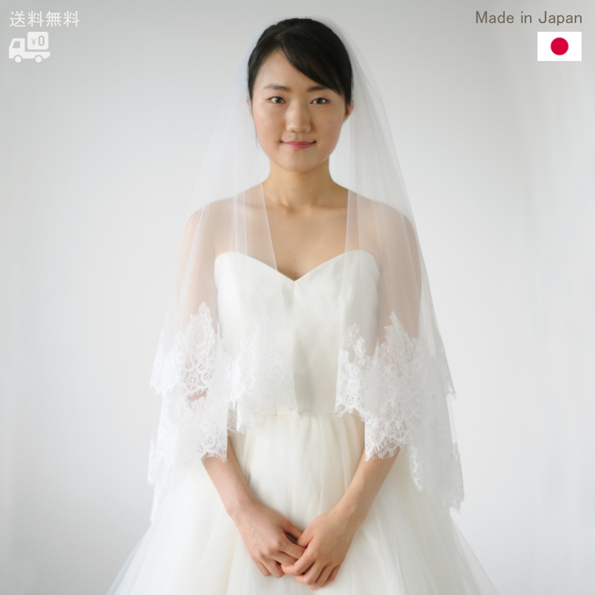 レースショートベール [V08]【商品説明】レースをあしらった、フェイスダウン可能な2段タイプのウエディングベールです。