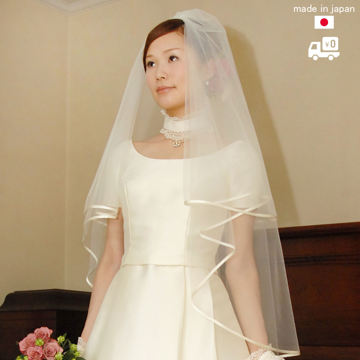 長さはちょうど1M、やや長めのショートベールです。