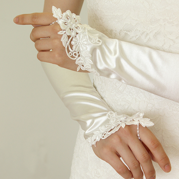 【カスタマーズボイス】披露宴でブライダルの衣装決めでどうしても気に入ったものがなく、自分で探していました。…じつはこの前にも1つ購入したものがあったのですが、ドレスと合わなく、また少し生地がチャチなのだったので通販なんてこんなものなんだなと諦めて式直前になって何気なくネットサーフィン…してみたら一目ぼれ!これは絶対にあうと通販再チャレンジ!と実際届いてみたら、写真どおり!ヘアメイクリハの時にはメイクさんからドレスとセットみたい、とっても素敵ですね☆と誉められました。グローブは他店でもっと安いものもありますが、これは値段分以上の価値がありました。