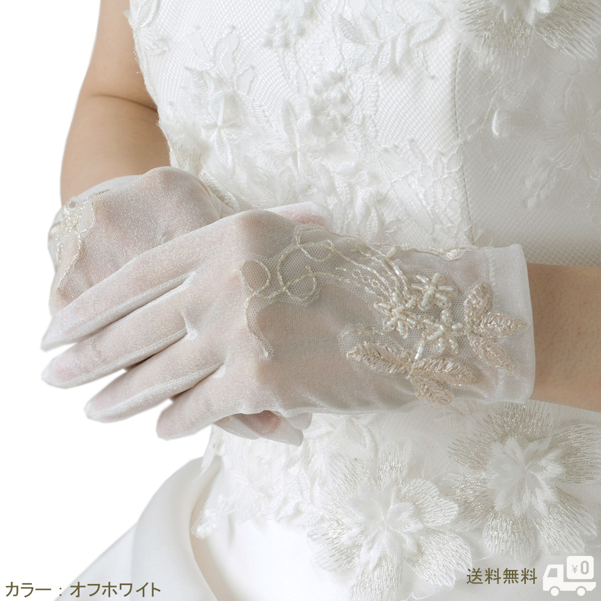 日本製のオーガンジーショートグローブに、国内自社アトリエにてビーズ加工レースをあしらいました。
