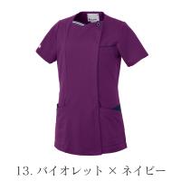 UQW1056 ルコック スクラブ 白衣 ジャケット レディス シルキートリコット 吸汗速乾 工業洗濯 ストレッチ 防透 制菌 接触冷感 可愛い かわいい 医療 看護師 医者 ドクター 病院 クリニック ナース 介護士 チームユニフォーム 襟付き