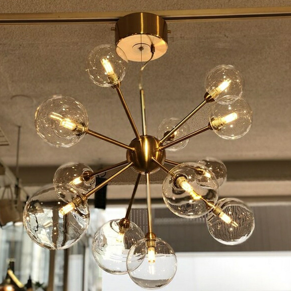 | 商品説明 | 美容室・カフェ・レストランなどの店舗利用で人気の13灯ライト。 サイズH530×φ720mmと大きめなサイズ感になりますので、 店舗ディスプレイのシンボル照明としてコーディネイトが可能です。 外から見ても存在感がありますので、お店の前を通りかかった方が足を止めてくださる事も多々ございます。 引掛けシーリングで取付け簡単・コード調整もお客様ご自身で簡単に出来ますので、 設置するハードルは高くないと思います。 色は2色展開になっております。 ゴールドはツヤ感が少ない色目となっておりますので、ウッド調・レンガ調などの材質を使用されている空間や、アイアン調の男前インテリアなどの相性が特に良いです。 シルバーはメタリック感のある反射する色見になります。比較的コーディネイトしやすい色見になりますが、白をベースとした空間などでシック・幻想的に魅せることが可能です。 |