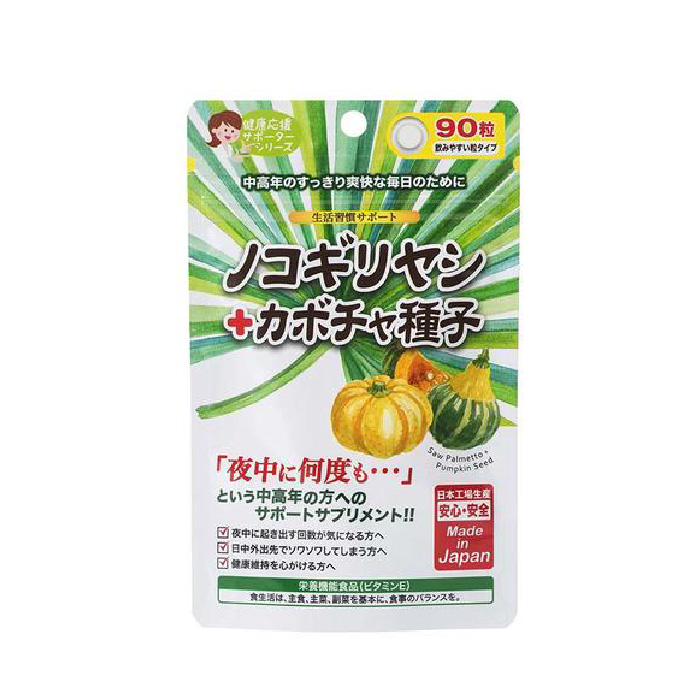 ■商品特徴:水分を摂ると夜が不安な中高年の方に中高年のキレをサポートするノコギリヤシに、天然のビタミン、アミノ酸など女性に必要な栄養素が含まれるカボチャ種子を配合!