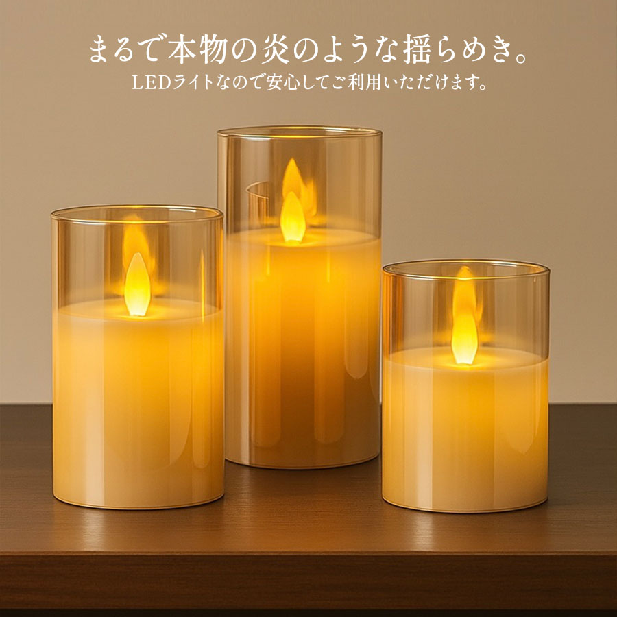 | 商品説明 | 本物の炎のようにゆらめく光が魅力的なLEDキャンドル。ガラスとプラスチックの組み合わせで高級感がありながらも安全にお使いいただけます。 火を使わず、単4電池3本で点灯するので、安心してどんな空間にも取り入れられます。リビングや寝室、レストランやイベント装飾にもぴったり。 【特徴】 ・炎がゆらめくリアルな光の演出 ・高級感あるガラス&プラスチック素材 ・単4電池3本使用(別売り) ・3サイズから選べる 【使用例】 ・リビングのインテリアに:テーブルや棚に置いて優しい灯りをプラス。 ・ベッドサイドに:ナイトライト代わりに使えば、心地よい眠りを誘います。 ・イベントやパーティーに:火を使わないので、屋内外の装飾にも安心。 ・店舗ディスプレイに:高級感ある演出で商品を引き立てます。 【注意点】 ・本製品は屋内専用です。直射日光や高温多湿を避けてご使用ください。 ・防水仕様ではありませんので、水回りや屋外での長時間使用はお控えください。 ・ガラス製カバー部分は割れ物ですので、取り扱いには十分ご注意ください。 ・電池は付属しておりません。 |