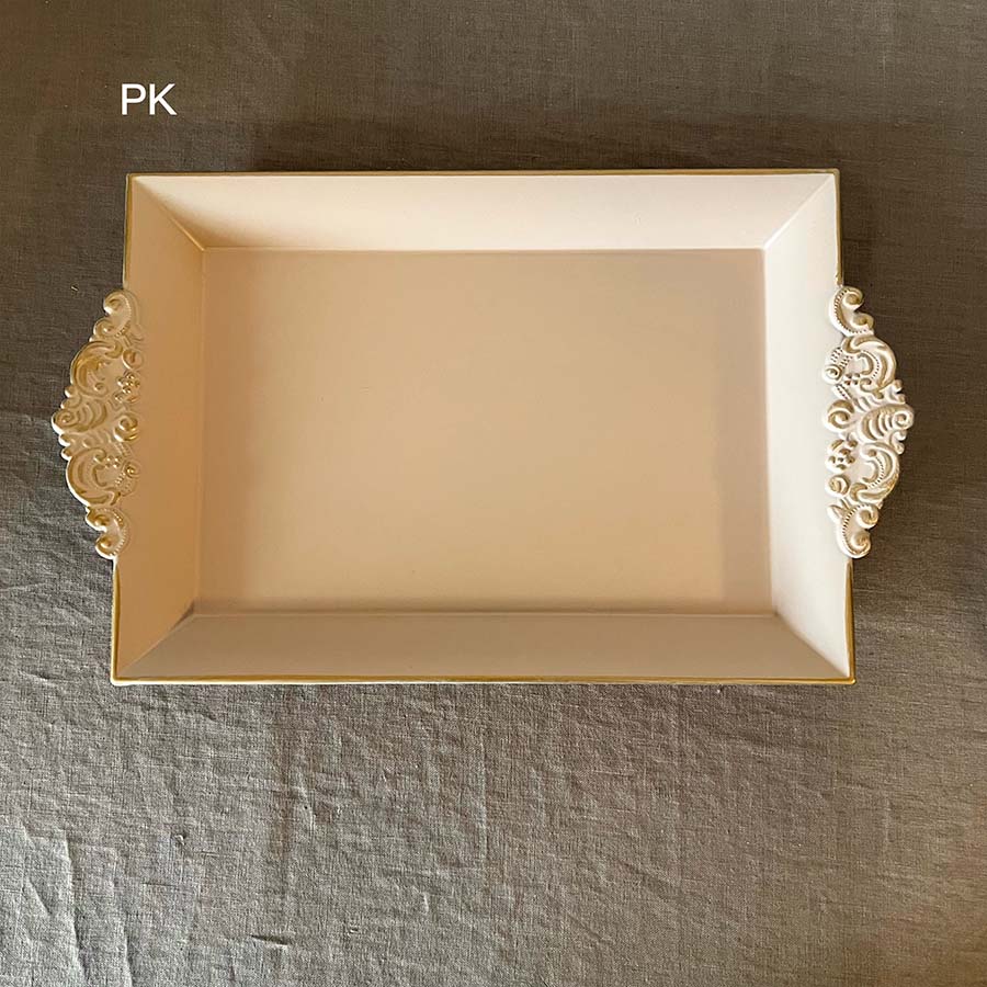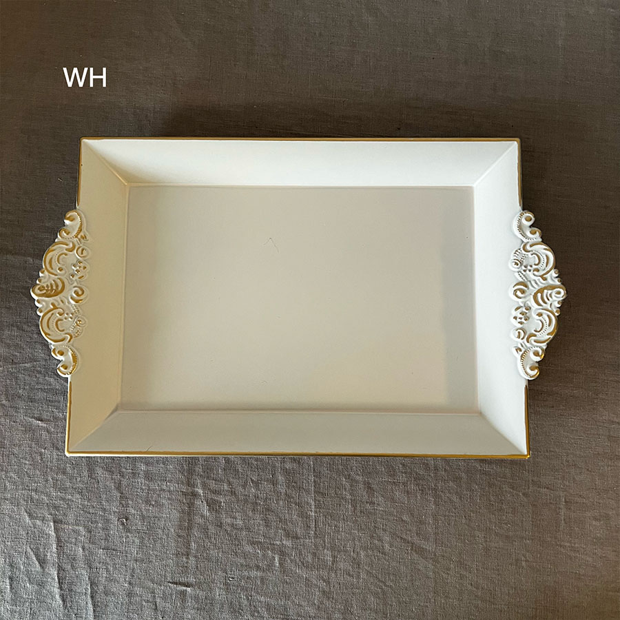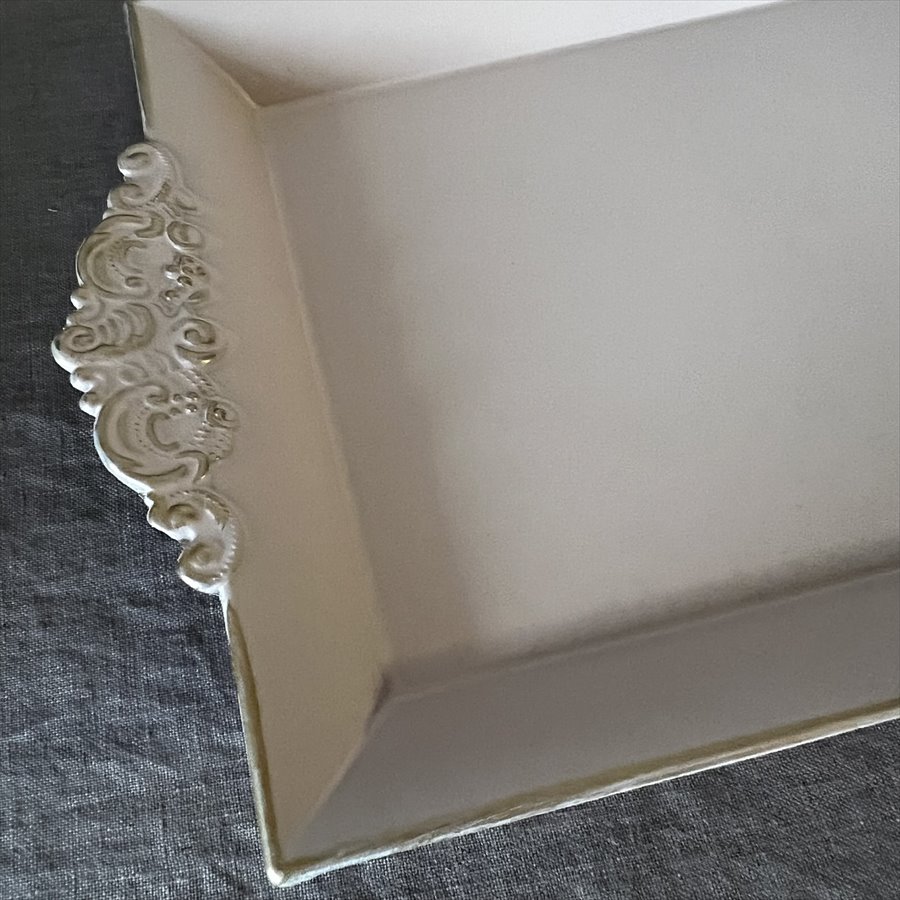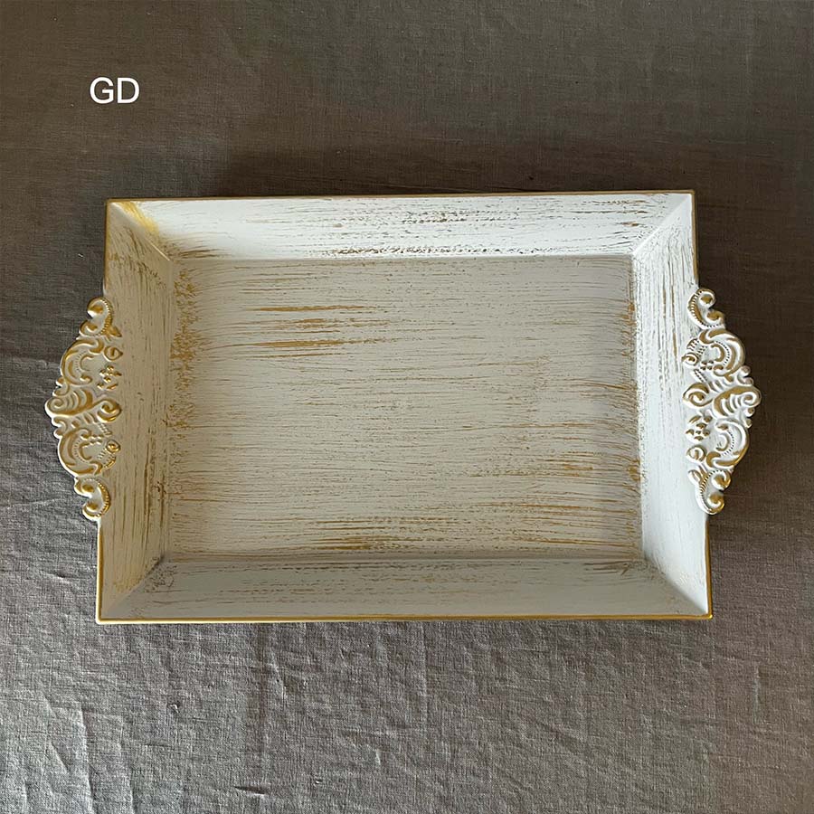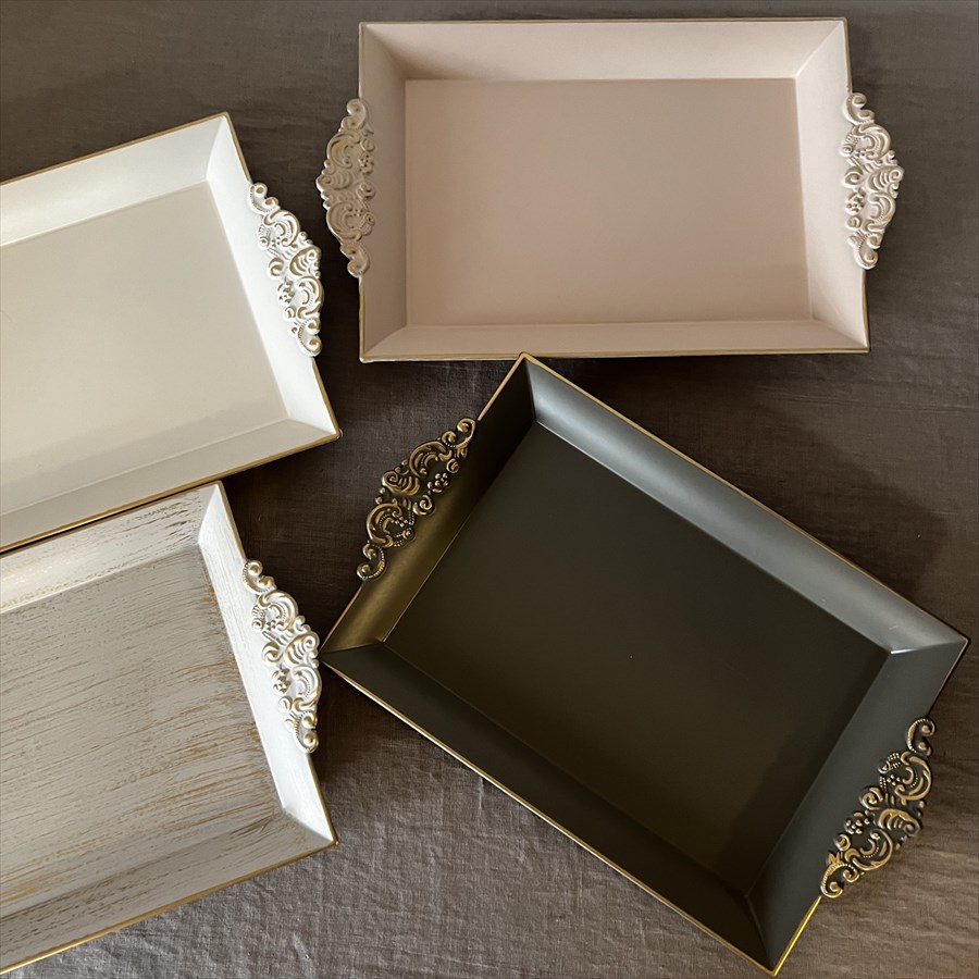 | 商品説明 | 軽くて使い勝手の良いプラスチックのトレイです。裏面まで塗装が施され、高級感があります。見た目も可愛く、お値段はお手頃です。長方形のサイズ違いもあります。 ※アンティーク調仕上げの為、多少の小傷、色むら、凹凸、個体差がございます。 |