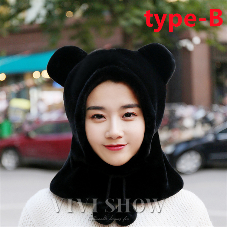 アニマル柄 耳つき 一体化 フェイクーファー 帽子 マフラー レディース もこもこ ボンボン付き イヤーカバー