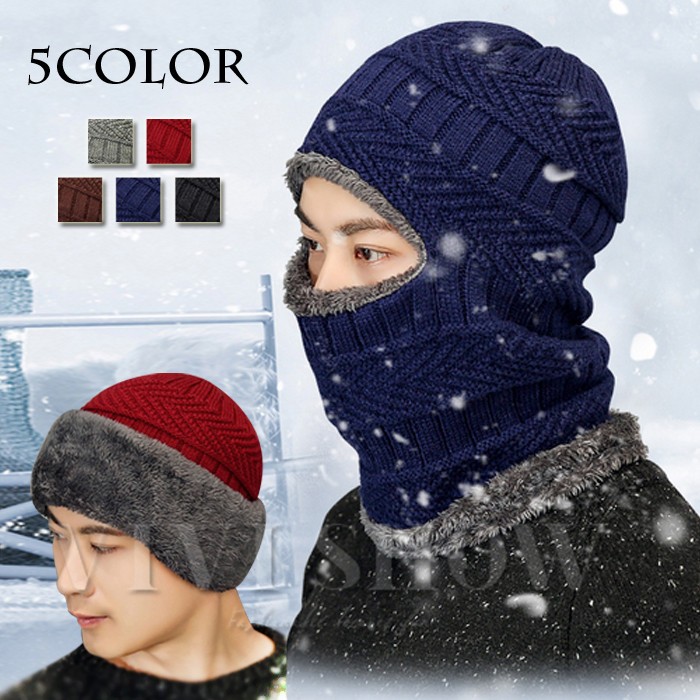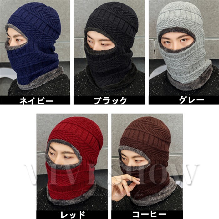 マフラー付き裏起毛ニット帽 マフラー帽子一体化 男女兼用 メンズ ネックウォーマー