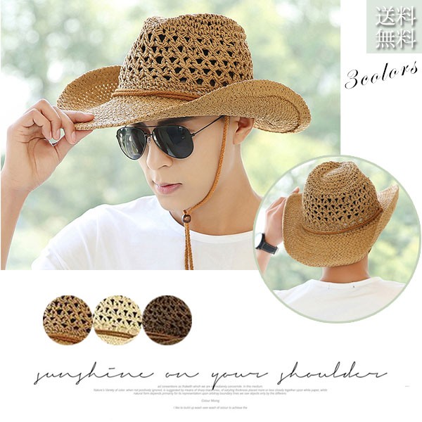 麦わら帽子 メンズ テンガロンハット ウエスタンハット カウボーイハット ストローハット 日よけ帽子 夏 vivishow