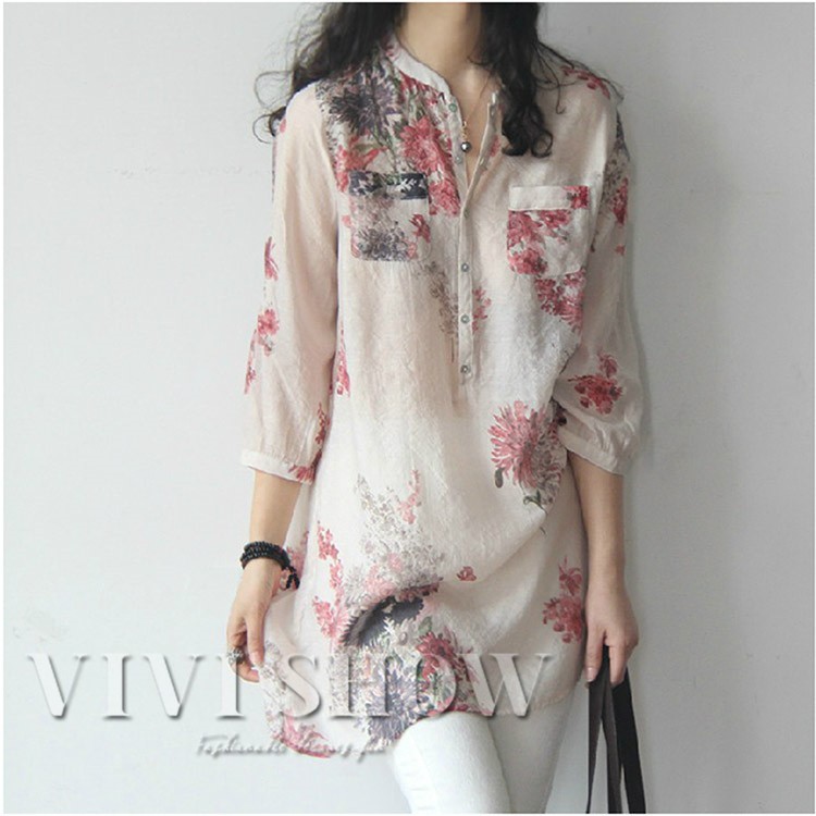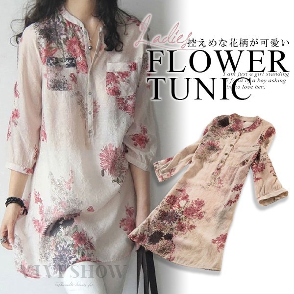 レディース チュニック 花柄 透け感 シャツ ブラウス 涼しい シースルー vivishow