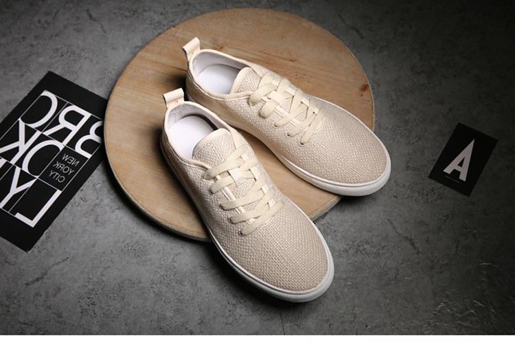 スニーカー メンズ キャンバス リネン 亜麻 靴 通気性抜群 運動 疲れにくい スニーカー レースアップ ローカット 春夏秋 vivishow