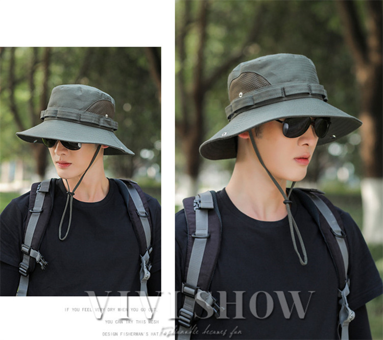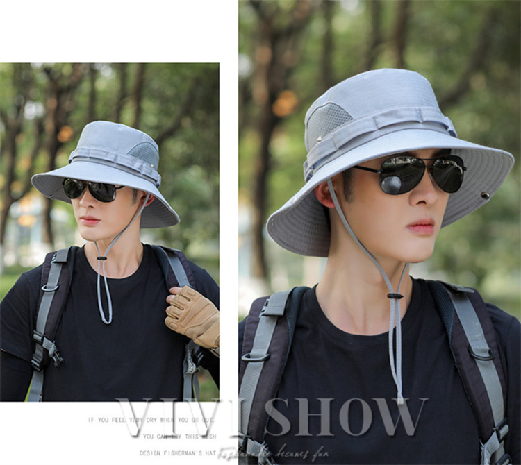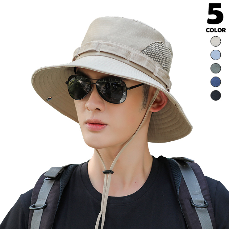 メンズ 日よけ帽子 ハット 帽子 ぼうし アウトドア シンプル あご紐付き 通気性 ツバ広