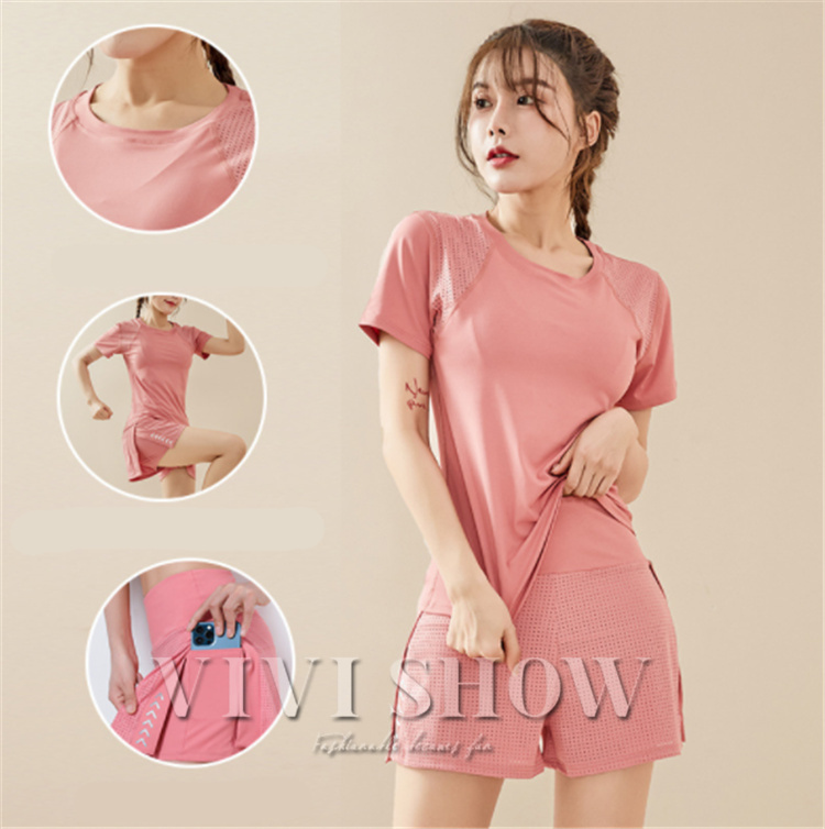 スポーツウェア 上下セット 半袖 レディース トレーニングウェア ランニングウェア ヨガ ウォーキング ジョギング ランニング ジム 速乾 通気 薄手