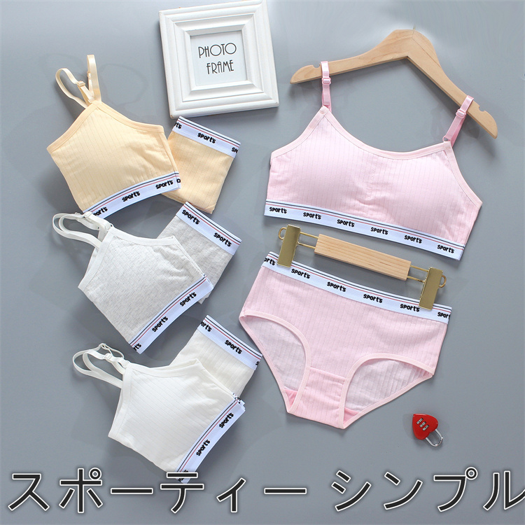 ジュニア 女性下着 ブラ ショーツ スポーティー 上下セット シンプル 通気性 かわいい