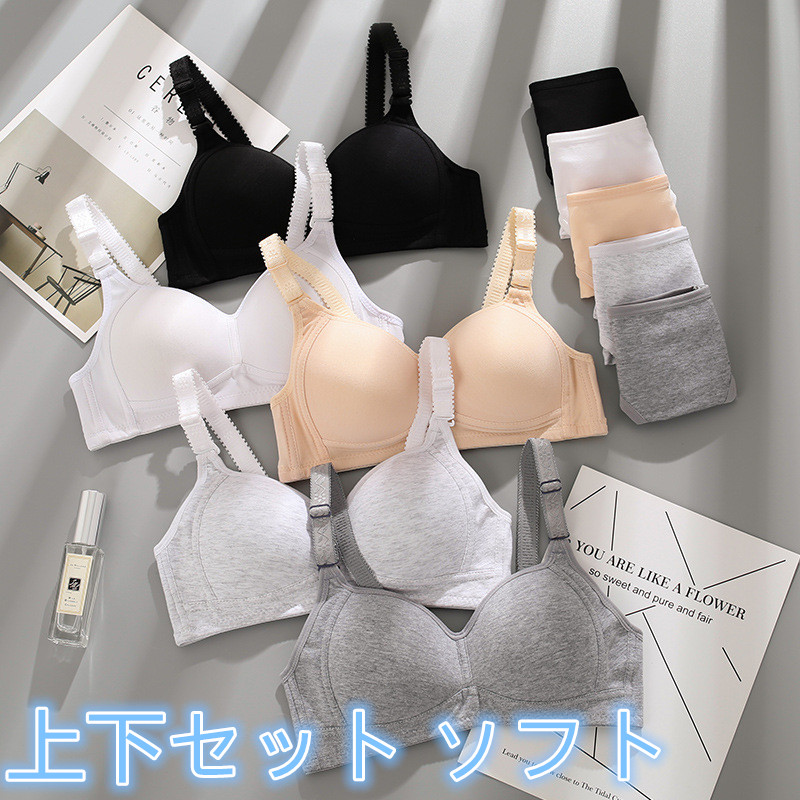 ジュニア 下着 ブラ ショーツ 上下セット シンプル 通気性 おしゃれ 響きにくい ソフト