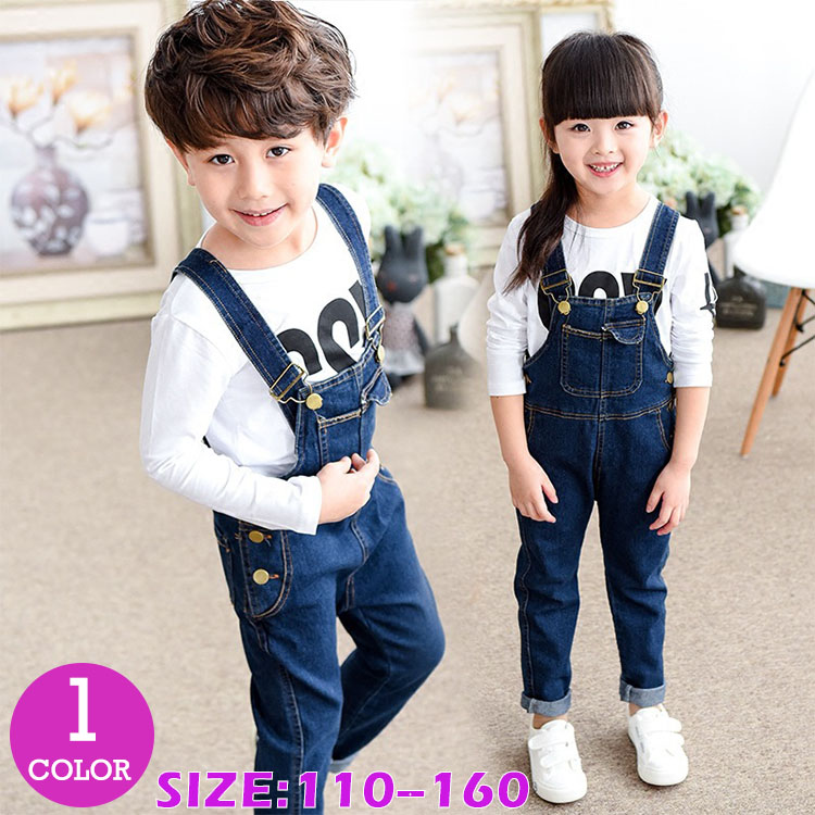 子供服 カジュアル デニムサロペット 子ども服 デニム ジーンズ オーバーオール ジュニア KIDS オールインワン 無地 女の子 ジュニア サロペット