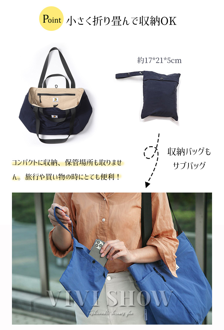 バッグ レディース トートバッグ エコバッグ マザーズバッグ ヨガ ジム 通勤 2way 大容量 多機能 軽量 無地 肩掛け 折りたたみ リバーシブ 収納袋付き