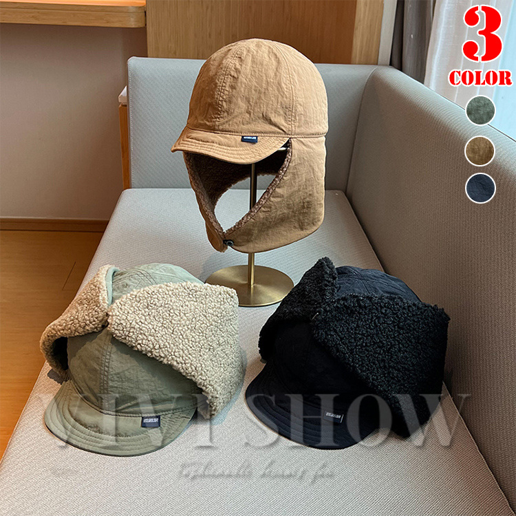 レディース メンズ フライトキャップ 冬の暖かい帽子 厚手で保温 鴨舌帽 風を防ぎ耳を保護 寒さ対策