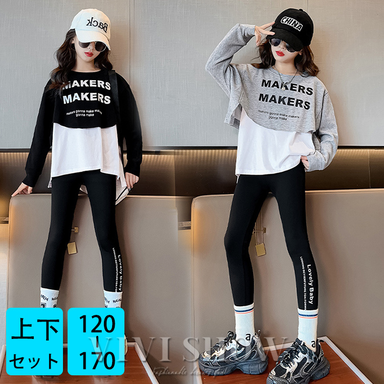 キッズ カジュアル 子供服 カットソー レギンス かわいい 上下セット おしゃれ シンプル あわせやすい ヒップホップ風