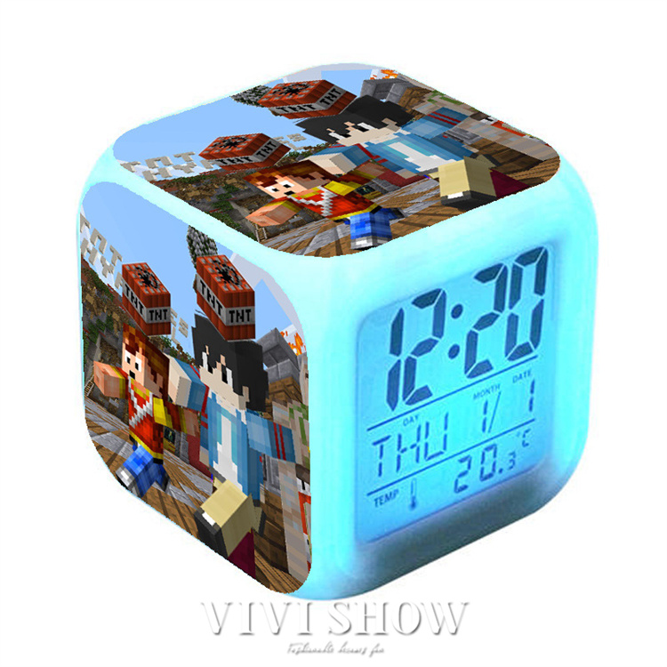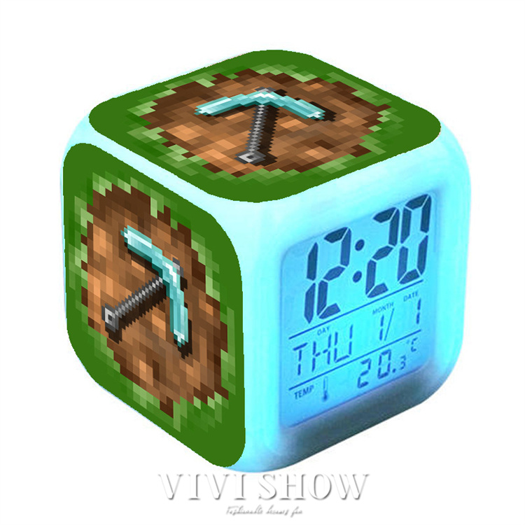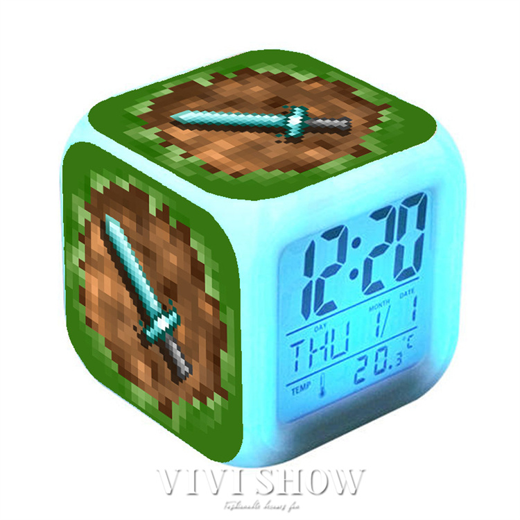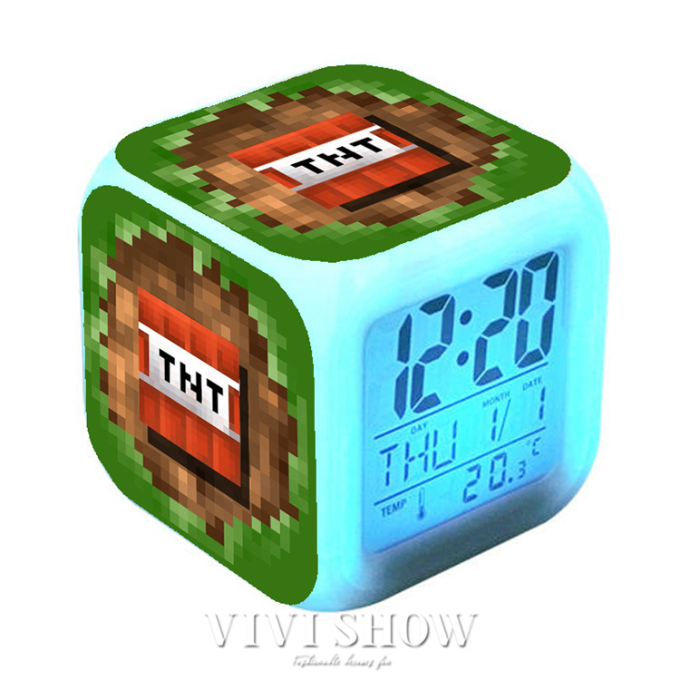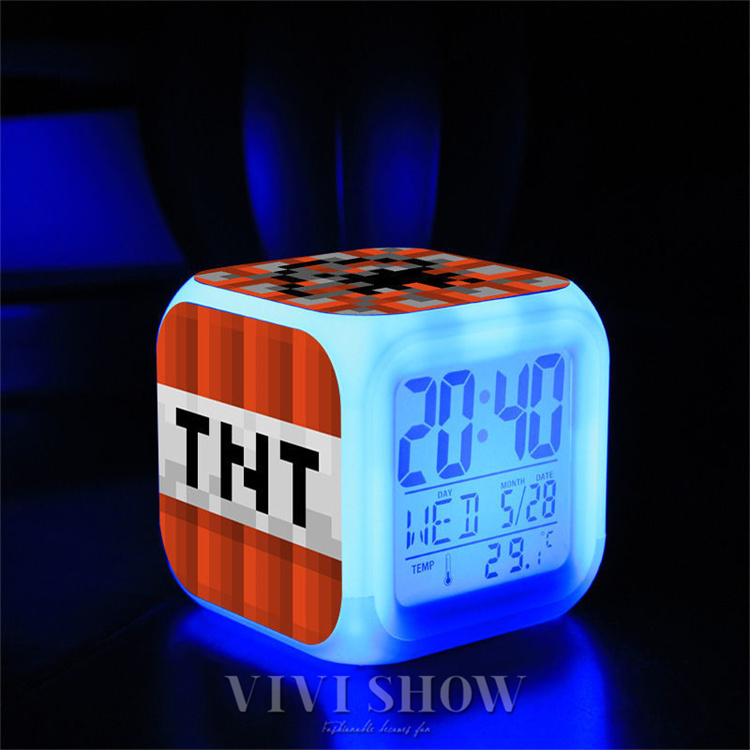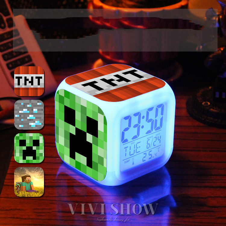 マイクラ風 目ざまし時計 目覚まし時計 大音量 デジタル クロック アラーム 多色ムード マインクラフト グッズ 目覚まし ライト