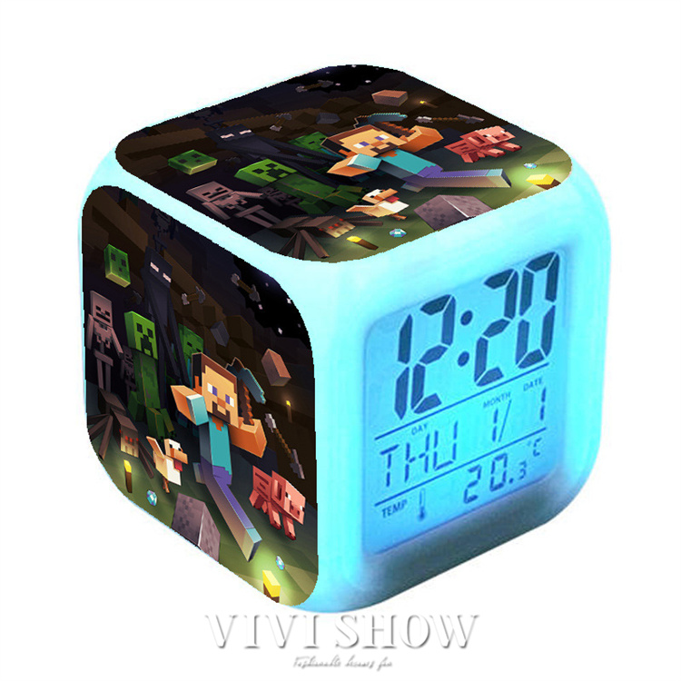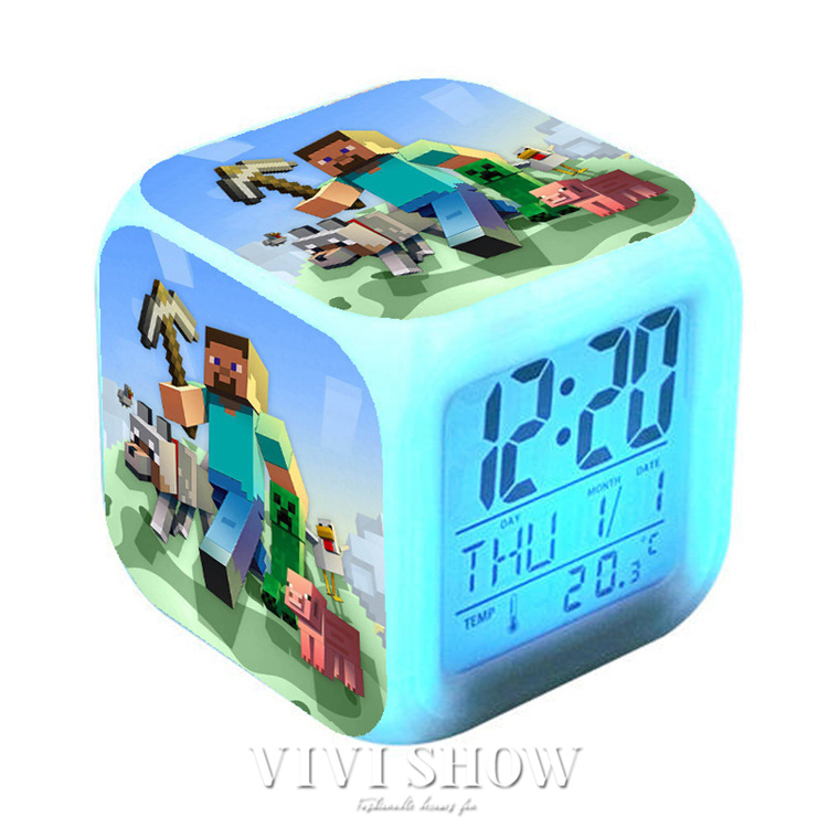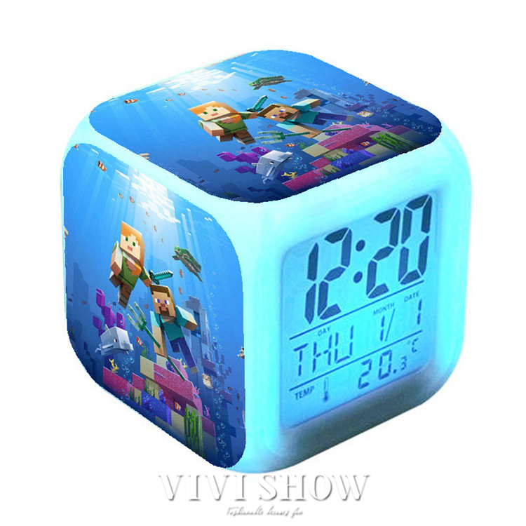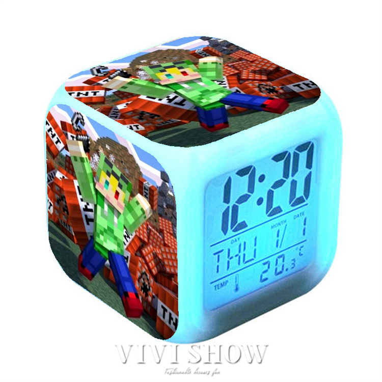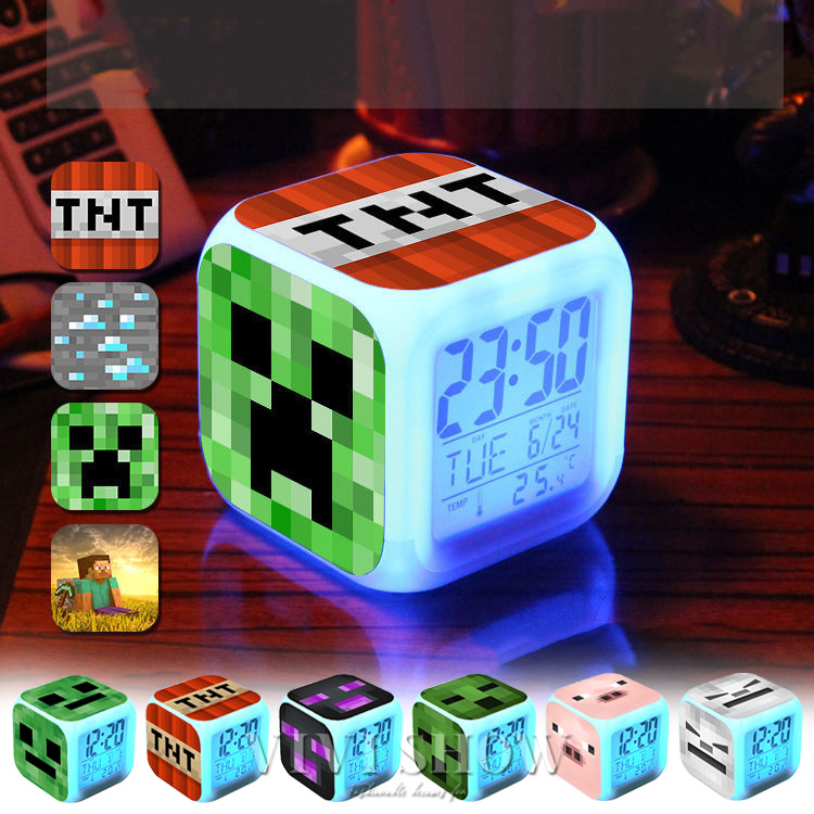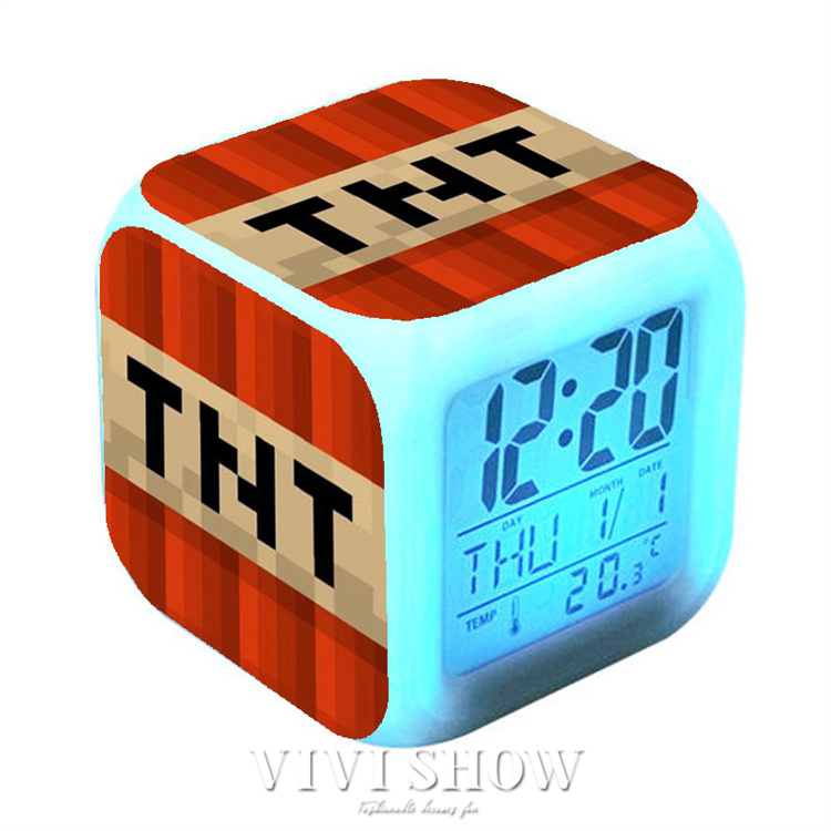 マイクラ風 目ざまし時計 目覚まし時計 大音量 デジタル クロック アラーム 多色ムード マインクラフト グッズ 目覚まし ライト