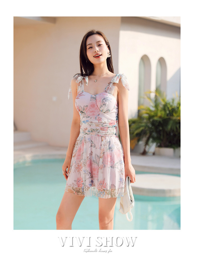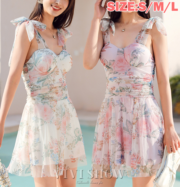 水着レディース 体型カバー 水着 ワンピース型 花柄 背中出し 小胸バンドゥ 水着 韓国風 大きいサイズ 可愛い スイムウェア 温泉 ママ ポイント利用