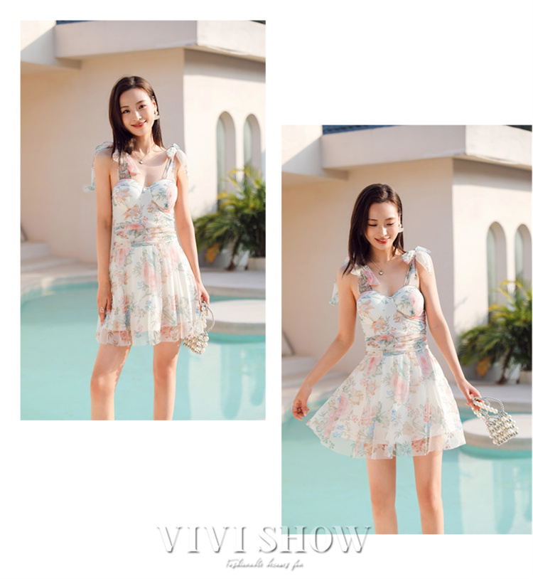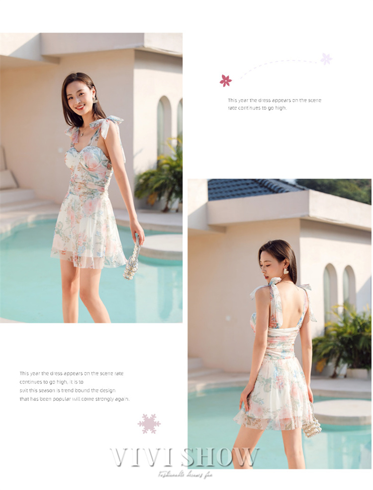 水着レディース 体型カバー 水着 ワンピース型 花柄 背中出し 小胸バンドゥ 水着 韓国風 大きいサイズ 可愛い スイムウェア 温泉 ママ