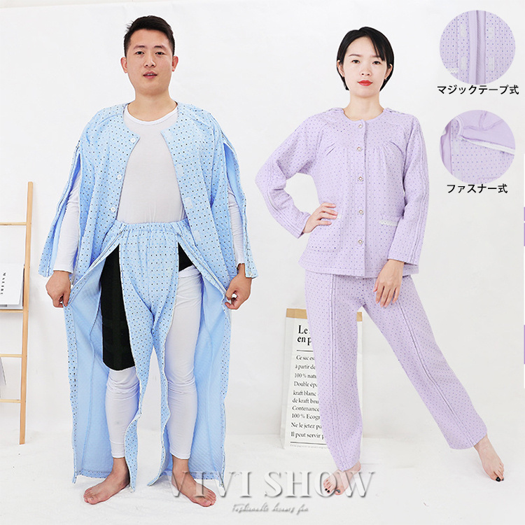 上下セット 入院服 メンズ 要介護 レディース ジップアップ マジックテープ 防寒 オープン全開 寝たきり 骨折 暖かい 介護パジャ ファスナー