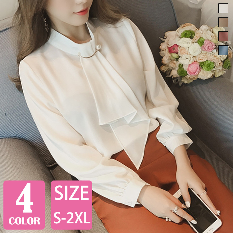 新カラー追加 胸元パールボウタイブラウス レディース 入園入学 卒業式 フォーマルトップス シャツ とろみシャツ シンプル