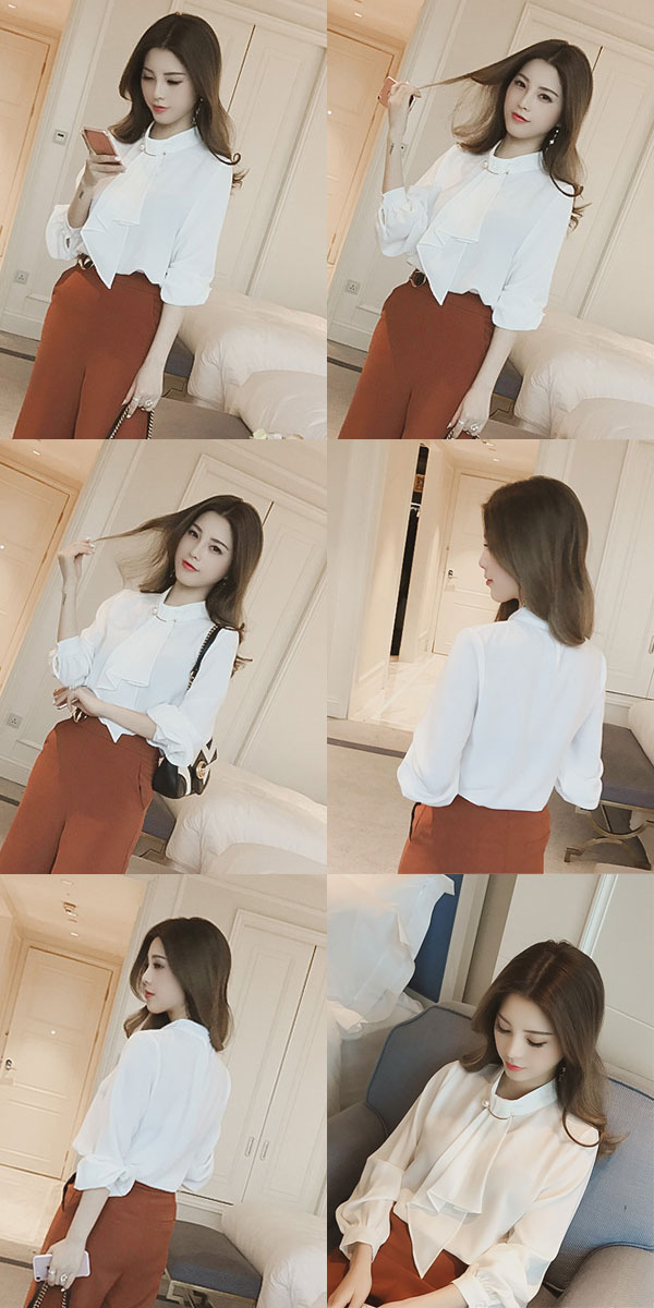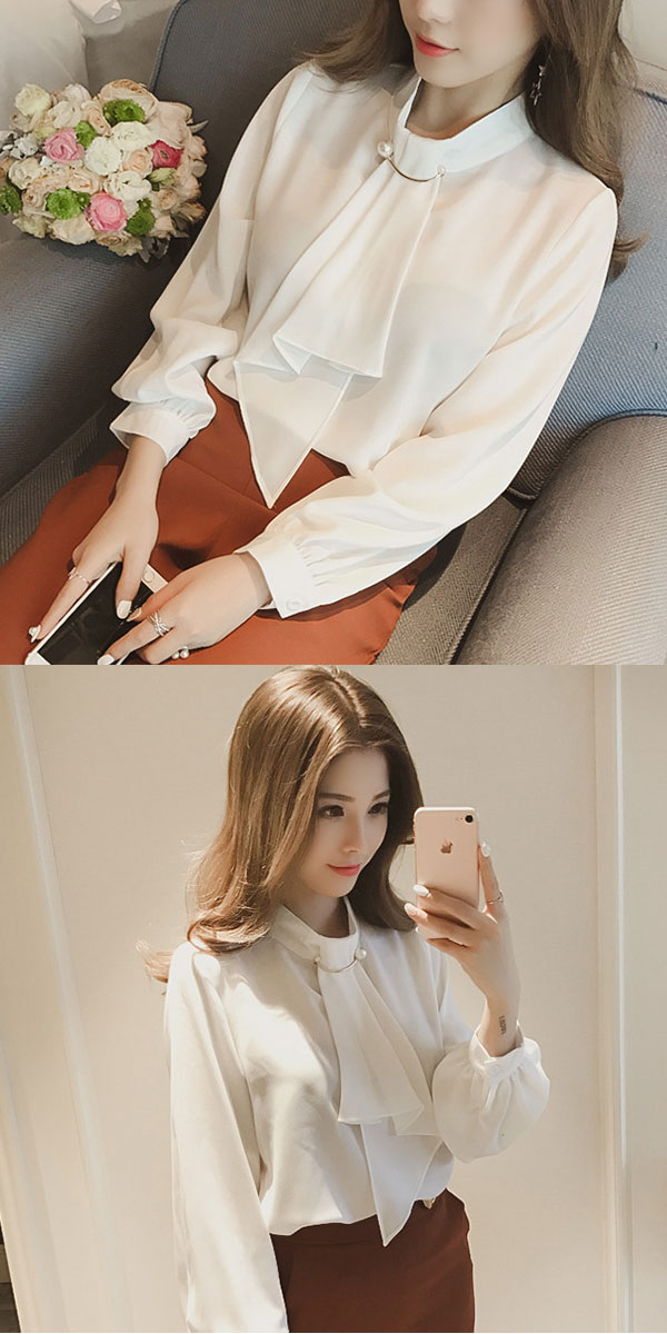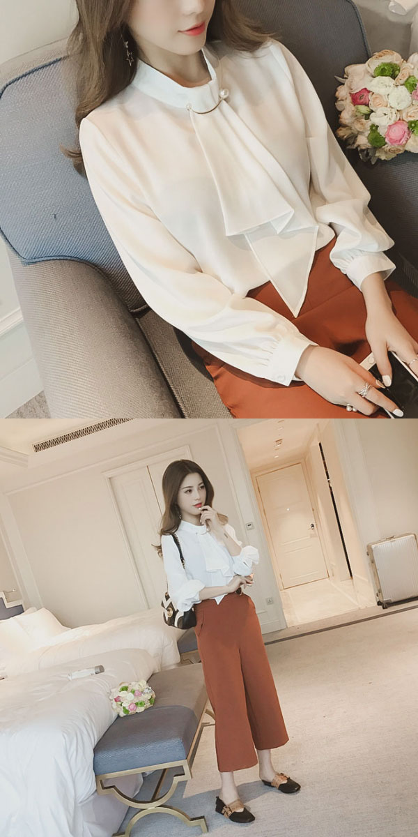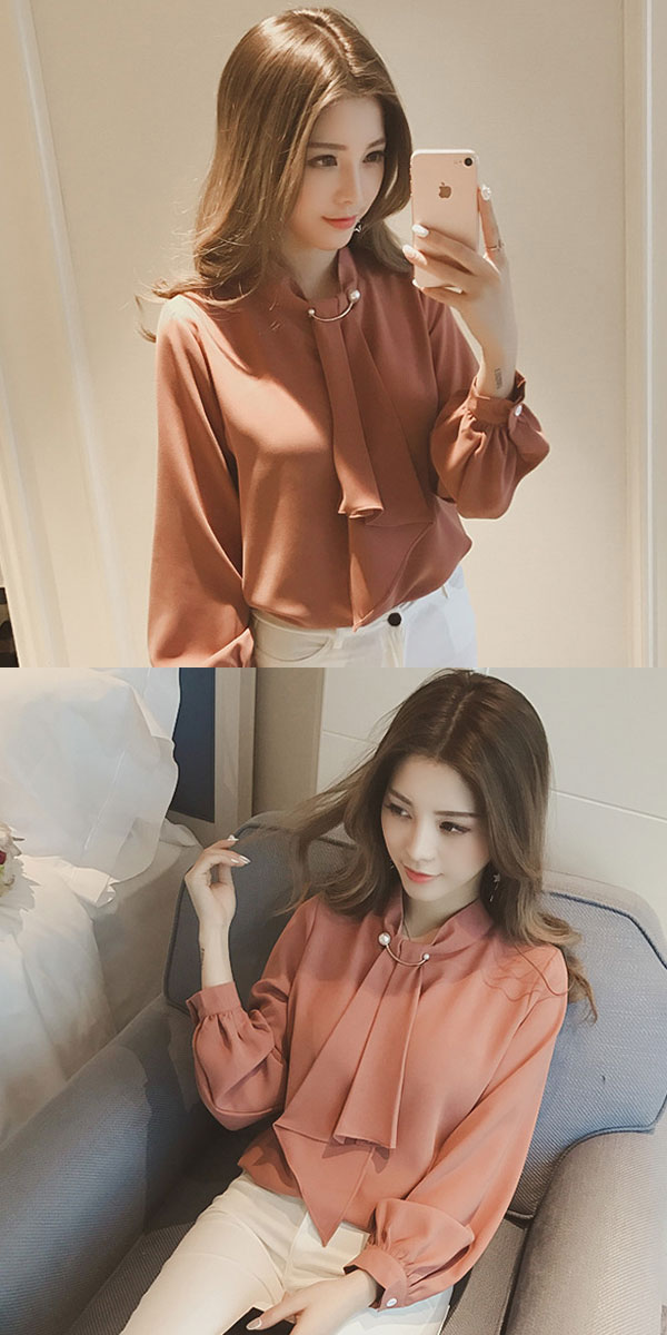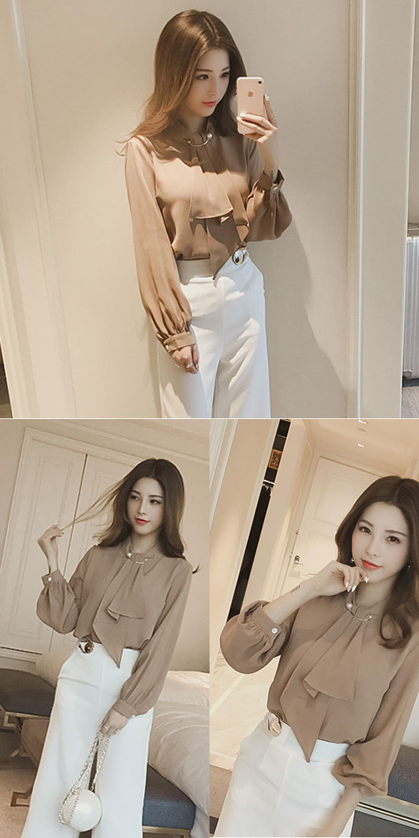 ●甘さ控えめで上品な印象のボウタイブラウス