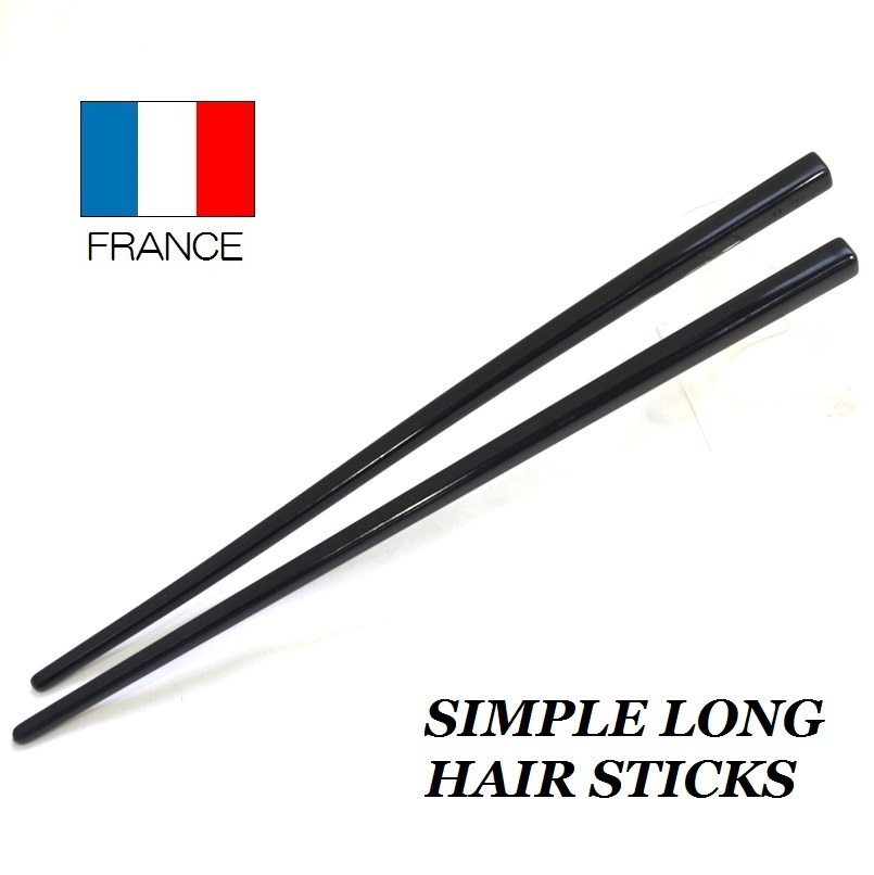 かんざし フランス製 ヘアスティック 【黒2本セット】 シンプル ロング 一本簪 1本おはし まとめ髪 夜会巻き おだんごヘア