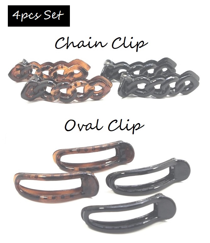 ヘアクリップ ミニクリップ チェーン 楕円 中抜き 4個セット まとめ髪 部分留め 小さい 子供用 ベビー ブラック べっ甲