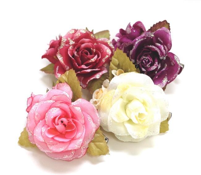 【特価】コサージュ 小さめ 薔薇 ローズ オーロララメ ブローチ&ヘアクリップ 髪飾り ヘアアクセサリー
