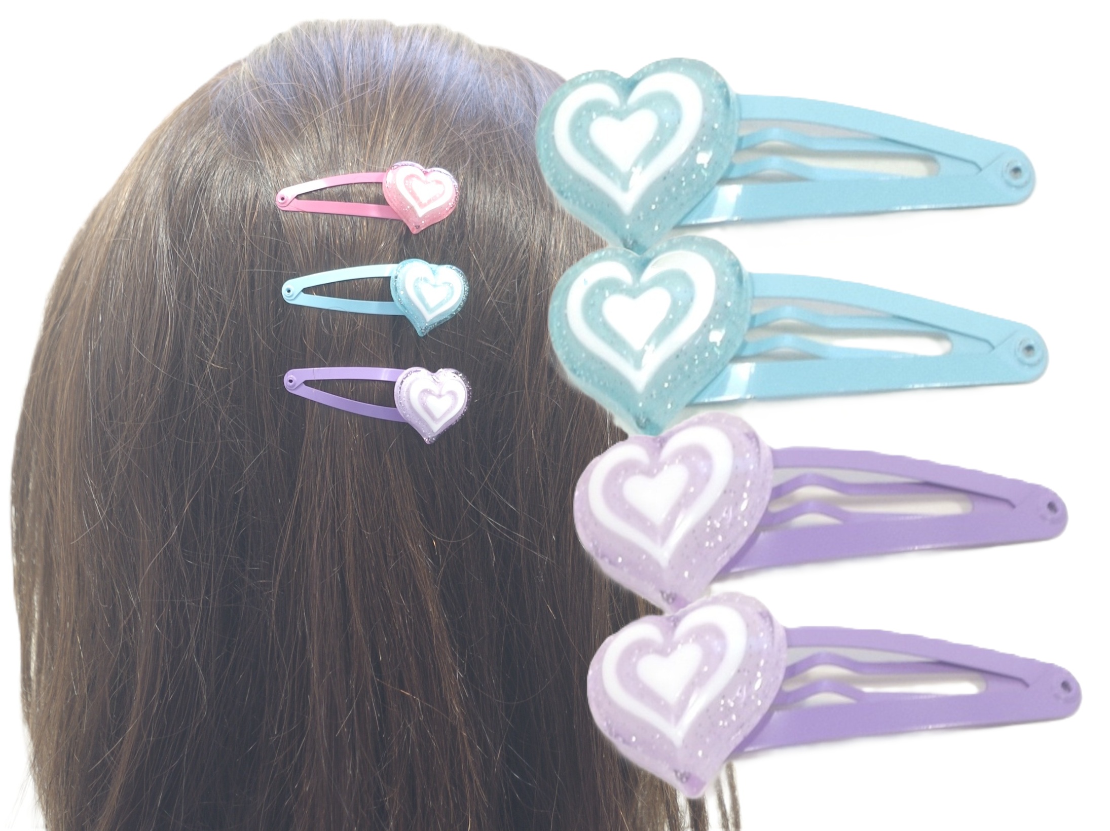 ハート型がとっても可愛いパッチン留め マーブル うずまき スリーピン 2カード ヘアアクセサリー 三角スリーピン ラメ入り まとめ髪 部分留め ジュニア
