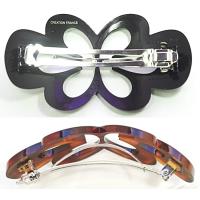 【残りべっ甲のみ】バレッタ 透かしフラワー お花型抜き Lサイズ 3Pバレッタ金具ヘアクリップ 大きめ 髪どめ シンプル 髪留め ヘアアクセサリー
